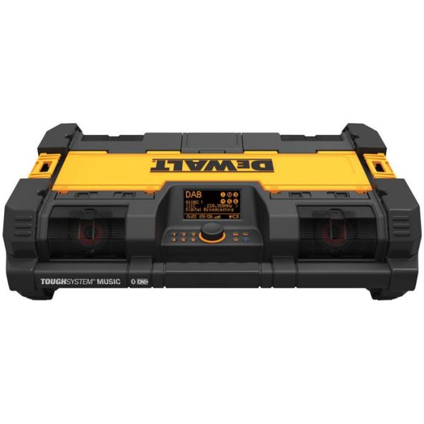 Byggplatsradio med bluetooth för att strömma musik trådlöst från din smartphone eller surfplatta. Utrustad med 4 högtalare, 2 subwofers, USB ingång och inbyggd laddare.