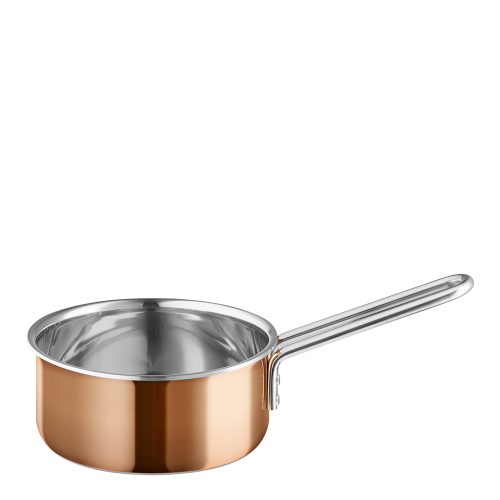 Kastrull med tre lager konstruktion av koppar, aluminium och rostfritt stål från Eva Solo. Kärlet har en praktisk hällkant. Koppar ger dig full kontroll över matlagningen eftersom materialet reagerar snabbt på temperaturändringar vilket en underlättar matlagningen när man exempelvis tillreder såser och mer avancerade rätter. Fungerar på alla värmekällor, inklusive induktion.