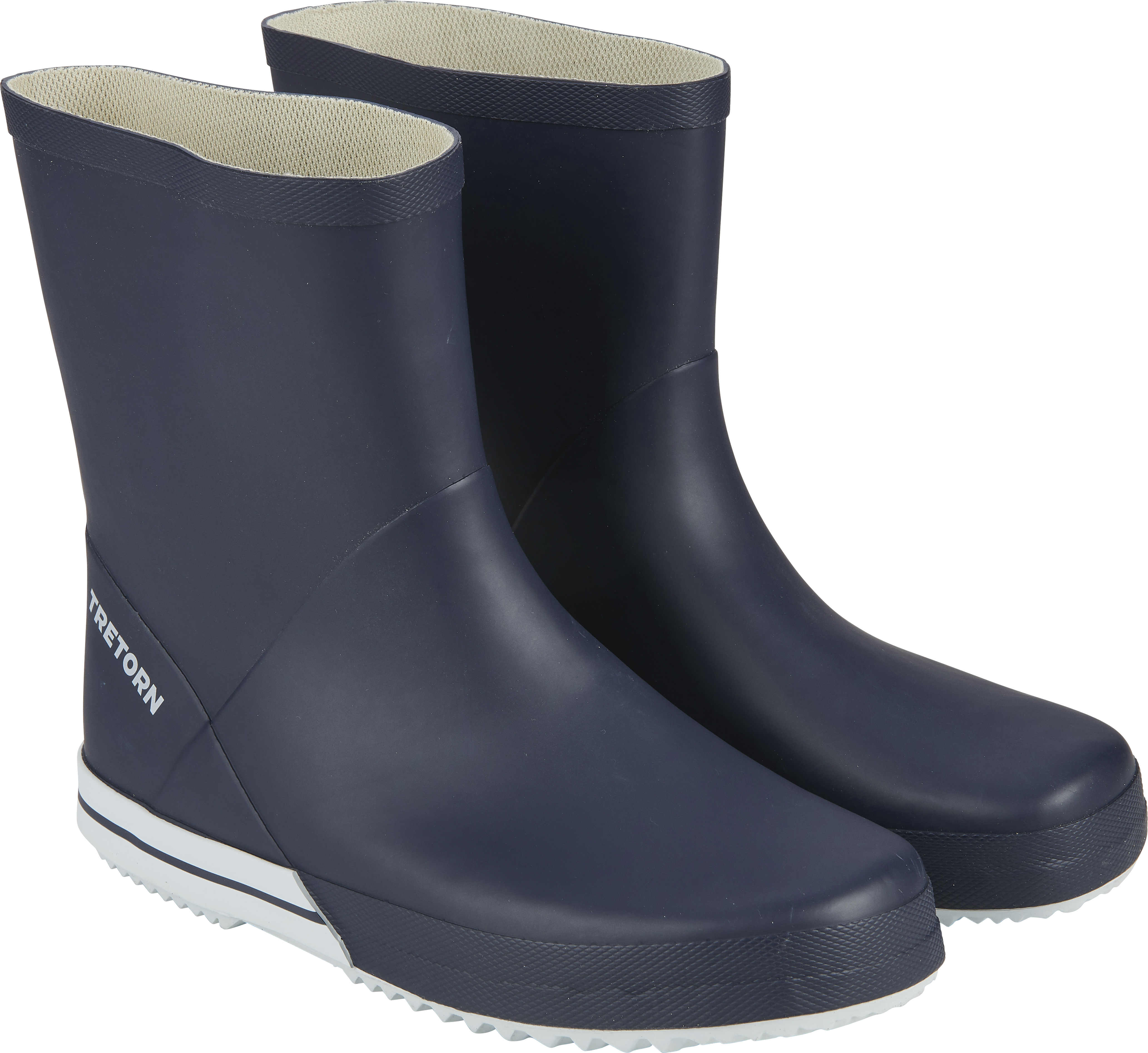 Basic Mid är en klassisk seglarstövel från Tretorn i naturgummi fritt från PVC. Den bekväma marinblåa gummistöveln för vardagsbruk har en greppvänlig sula och något lägre skaft för enkel i och urstigning.