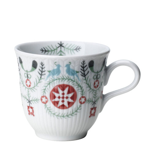 Glöggmugg från serien Swedish Grace Winter.Julen behöver inte ta slut förrän du vill det. Swedish Grace Winter är ett givet inslag på julbordet. Men inte bara då. Både på egen hand och mixad med delar ur originalet sprider den en stämning av barndomens vintrar under årets mörkaste månader. Med strama granbarr, frostnupna mistlar och snöflingor har Katarina Brieditis varsamt klätt Louise Adelborgs klassiska veteax i vinterskrud. Så även om dekoren är ny känns känslan av Swedish Grace igen.