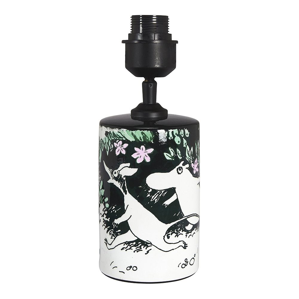 Lampfot i keramik med Tove Janssons älskade karaktärer ur berättelserna om Mumintrollet och hans vänner. Motivet Familjen kommer från novellen Kometen kommer.